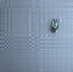 2017Vlechtwerk gemaakt van satijnlint gespannen op een vierkant frame van 100 x 100 cm. Gemaakt in een kleur blauw, de druppel is gevuld met twee andere kleuren (petrol en zeegroen) door middel van moulage.